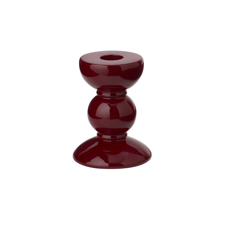 An Addison Ross exclusive design, our small Cherry lacquered bobbin shaped candlestick is made from sustainably sourced rubber wood, finished with 8 coats of high gloss lacquer hand polished between each coat. Suitable for standard sized dinner candles. Each candlestick can be paired with our Wax LED Candles or traditional wax candles. When using regular candles, ensure they are not burned below 2″ to prevent damage to the candlestick.