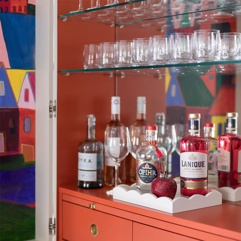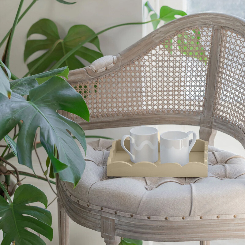 Designed to sit beautifully on any bedside table, coffee table, or sideboard this pretty lacquer tray boasts a playful scalloped edge and deep straight sides. A must-have for any home, this piece functions wonderfully as a vanity tray, drinks tray, or for displaying small trinkets.