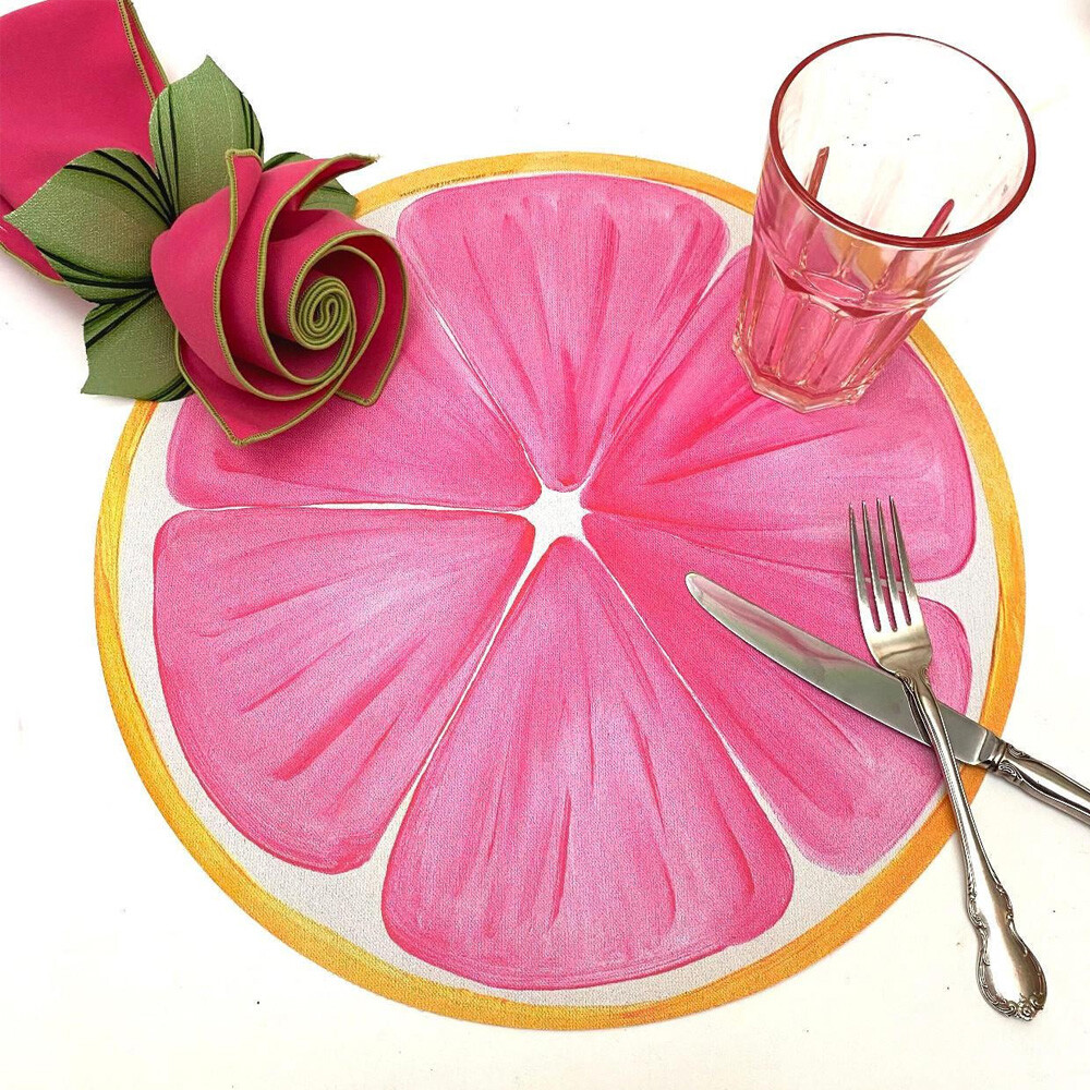 A tangy slice of life, these perfect 15″ citrus rounds set the table for fun — and function. Artfully printed from Carole’s original artwork in the USA, this ARTPrints(tm) placemat is made of textured vinyl canvas, and is further hand-poly-coated for easy-care sponge-cleaning! Pair with other the citrus for that yummy mix. Made in the USA.