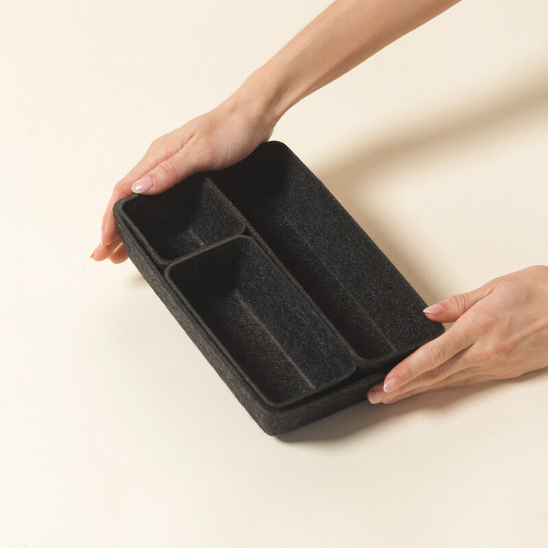Crafted from durable felt fabric, these organizers are perfect for sorting office supplies, junk drawers, toiletries, makeup, and personal accessories.