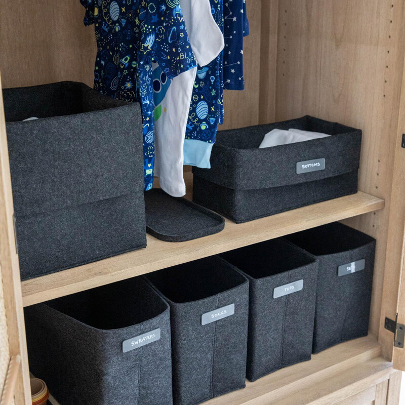 Flex Bins are adjustable by height. Use while folded to a height that works for you or unfolded for greater verticality with increased storage space.