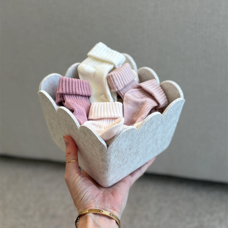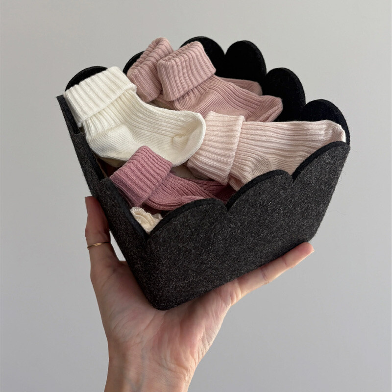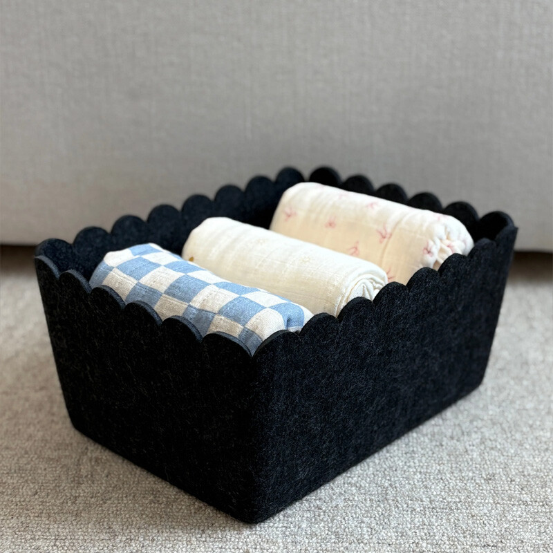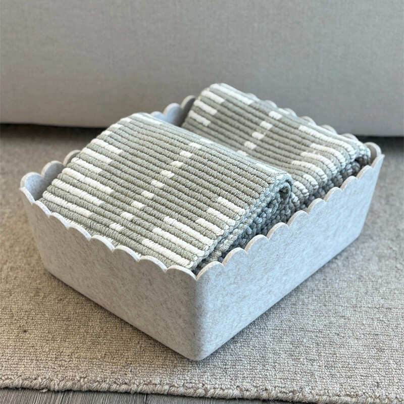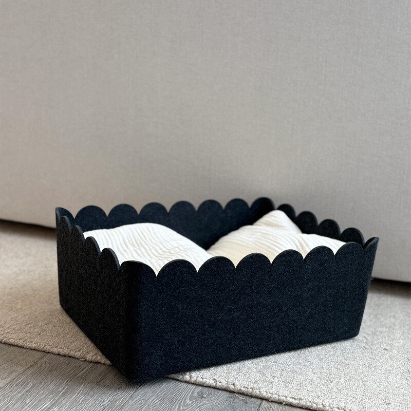 Our Scalloped Bins offer the same spacious, structured storage you love, now finished with soft scalloped edges for a more elevated and playful touch. Designed to maintain its modern shape, this durable felt bin provides a stylish solution for organizing clothing, toys, and kitchen or pantry essentials. The scalloped top adds subtle character while keeping your space neat, intentional, and clutter-free. Perfect for the playroom, kitchen, pantry, bedroom, living room, and beyond, this bin blends function and design—making everyday organization feel beautifully considered.