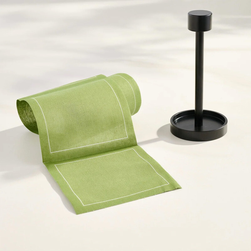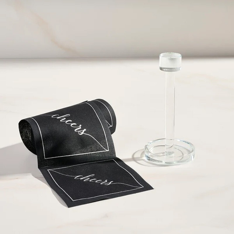 Introducing our exclusive, patent-pending Cocktail Napkin Stand—the ultimate statement piece designed to elevate your entertaining experience. Crafted with both style and functionality in mind, this one-of-a-kind stand holds a roll of our cocktail napkins with ease, transforming your bar cart, countertop, or tablescape into a sophisticated and effortlessly chic display. Perfectly tailored to accommodate our signature roll of cocktail napkins, this stand allows for a seamless tear-and-serve experience, ensuring your napkins are always within reach while adding a touch of elegance to any setting.