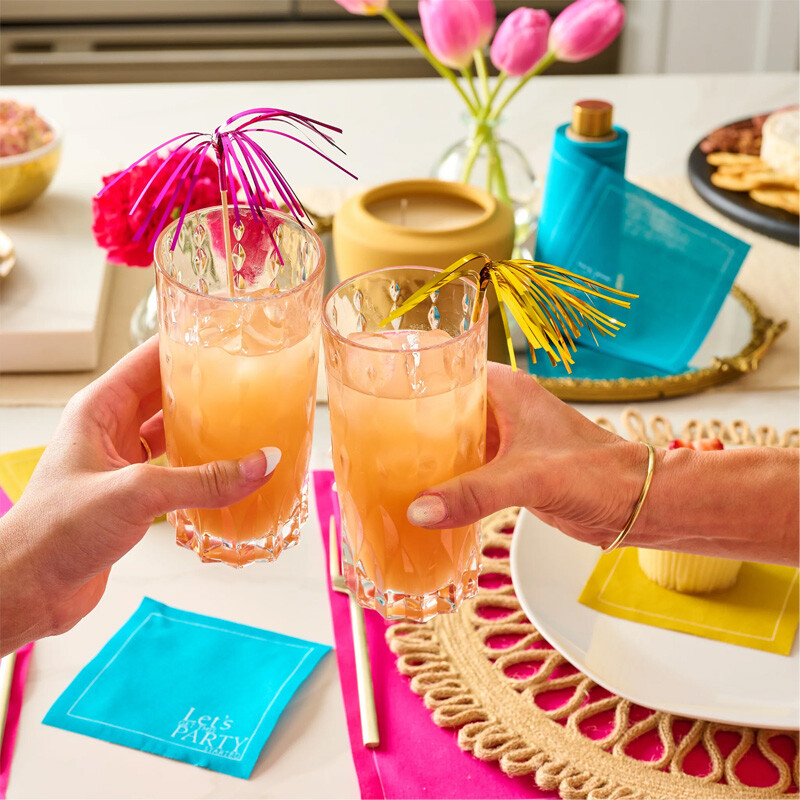 Zesty, vibrant, and full of personality, featuring bold white text that says it all — “Let’s Get This Party Started.” Playful, modern, and made to celebrate, it’s the perfect way to add energy and color to any occasion. Whether serving margaritas, appetizers, or desserts, it brings instant joy to the table. Crafted from 100% premium cotton, these luxury disposable cocktail napkins are biodegradable, recyclable, and beautifully packaged in eco-conscious boxes. Each napkin is perforated for easy tear-off use and maintains a smooth linen finish that won’t crinkle or swell under moisture. Pair with one of our Cocktail Napkin Stands for a polished presentation at any bar or table.